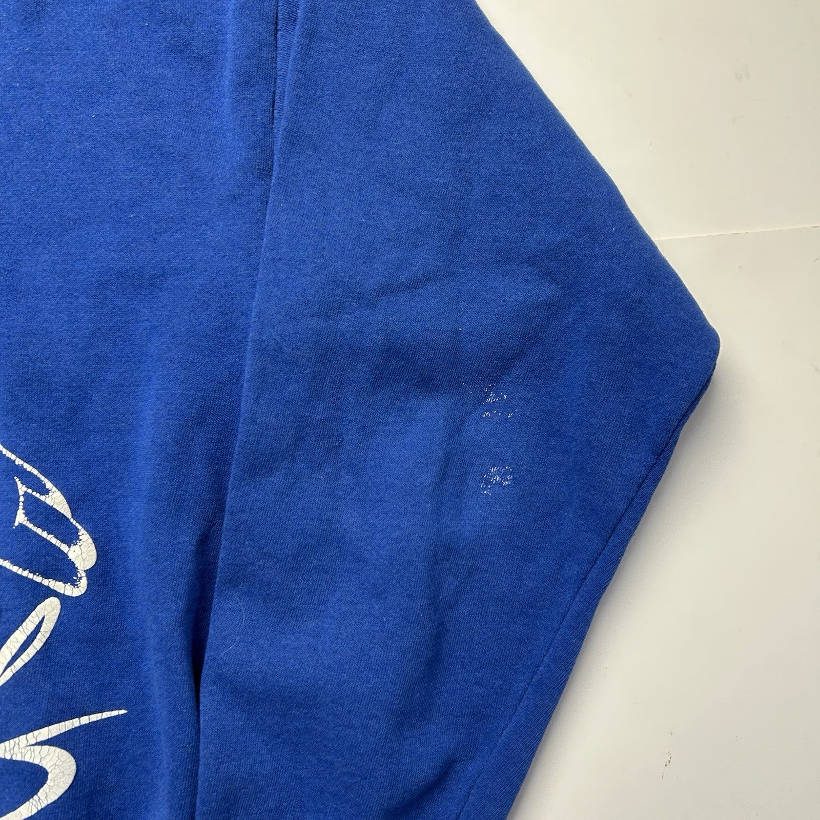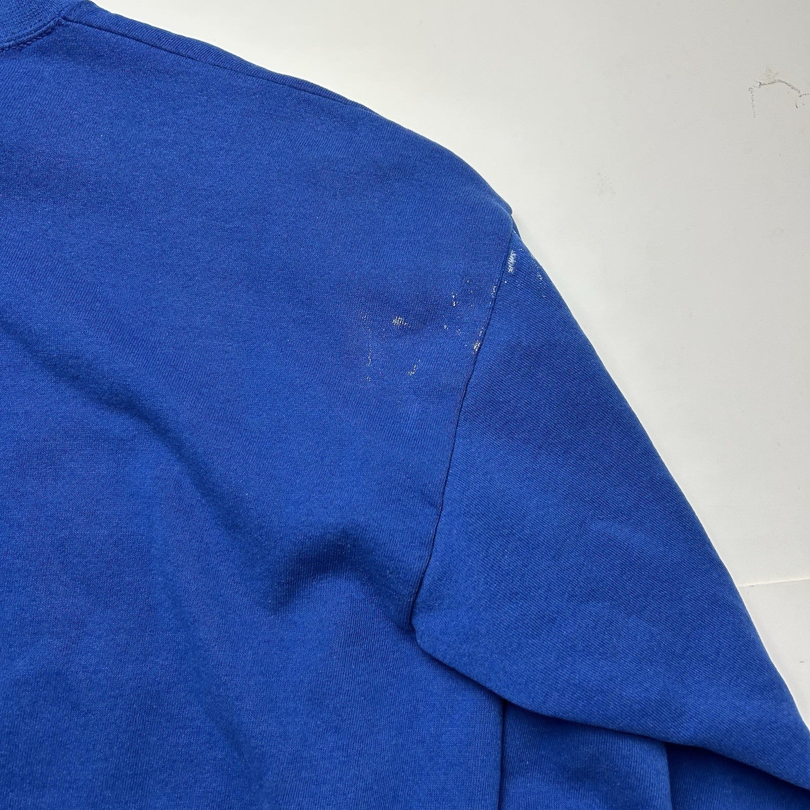 Condition: Fair overall condition. Some white stains/marks on arms and shoulder (pictured)
