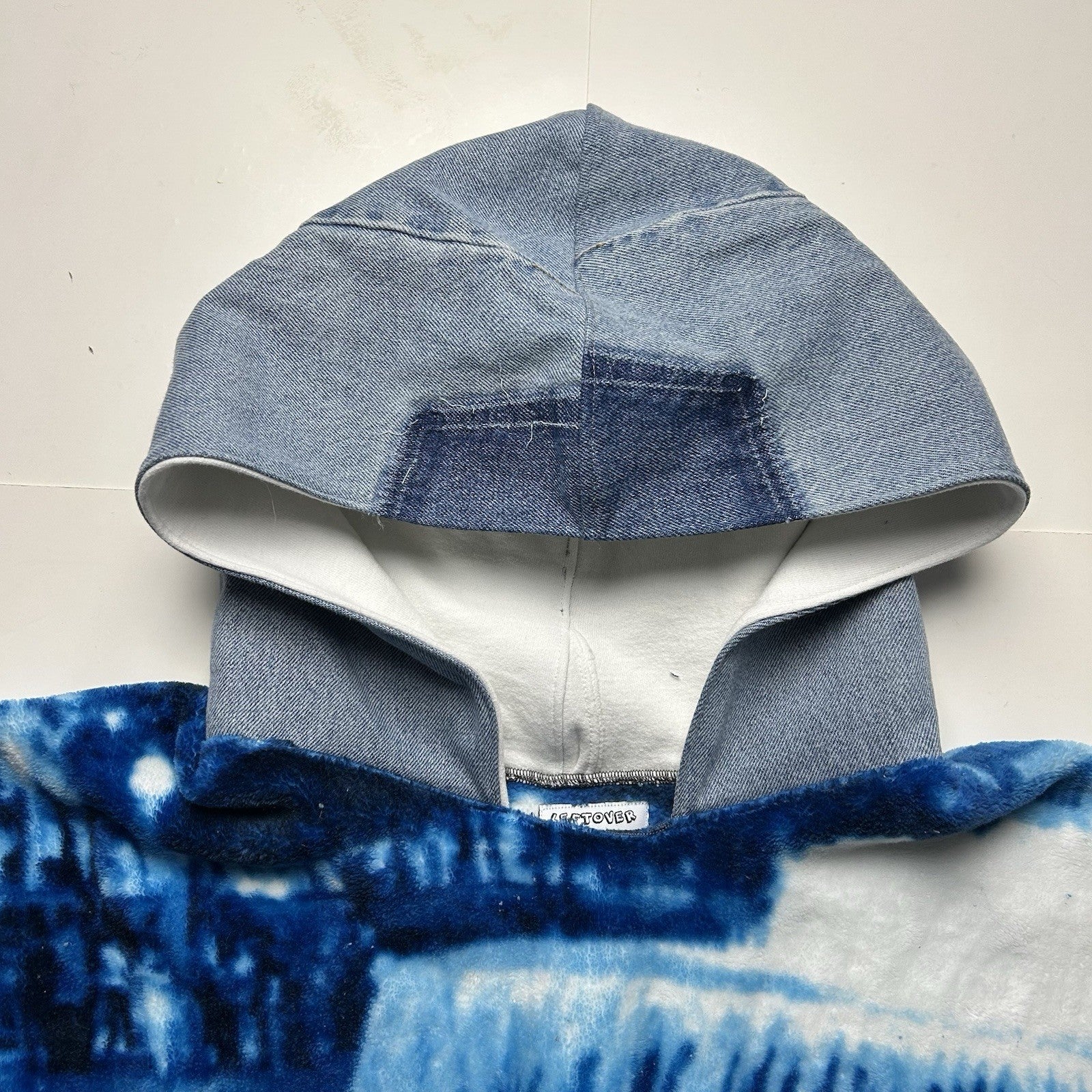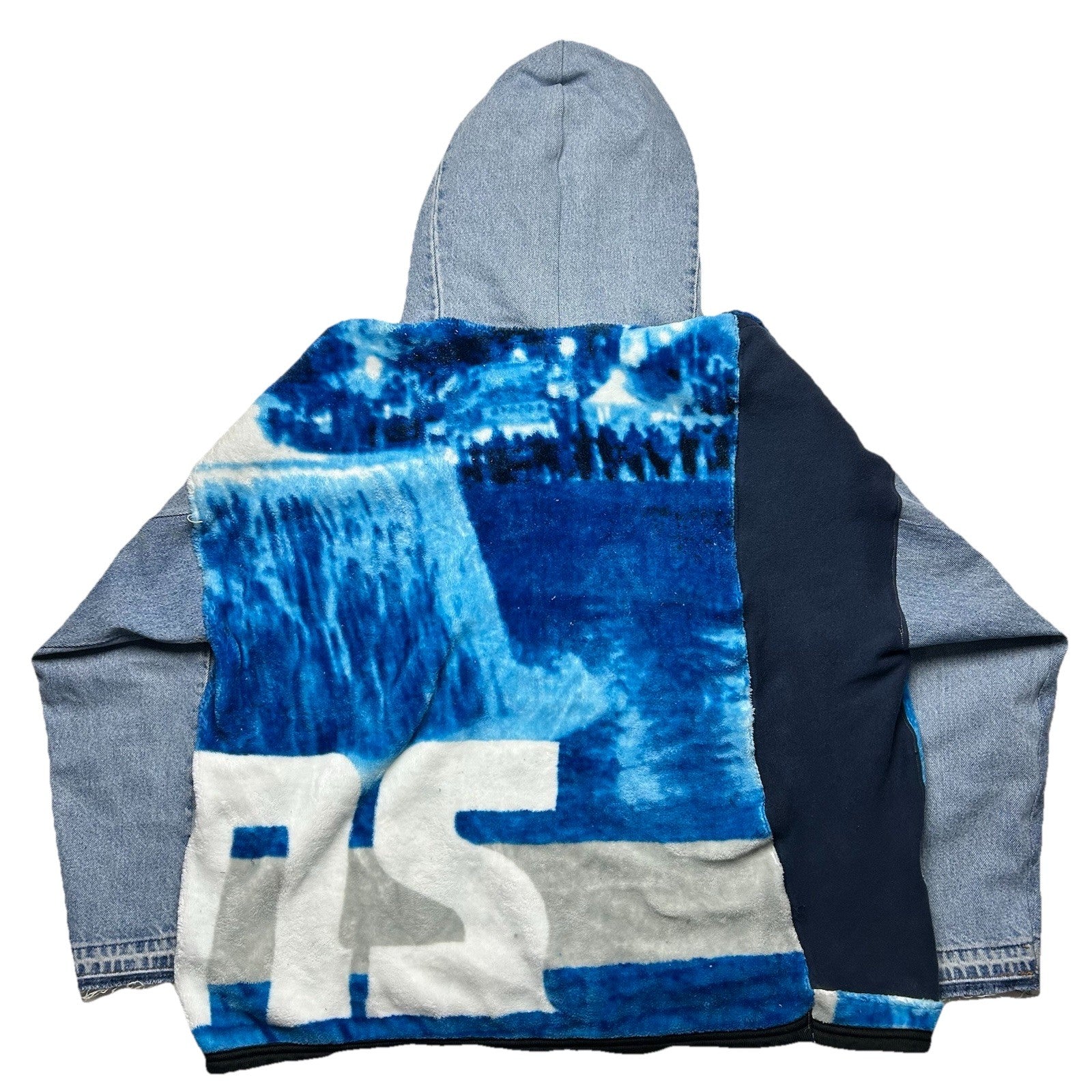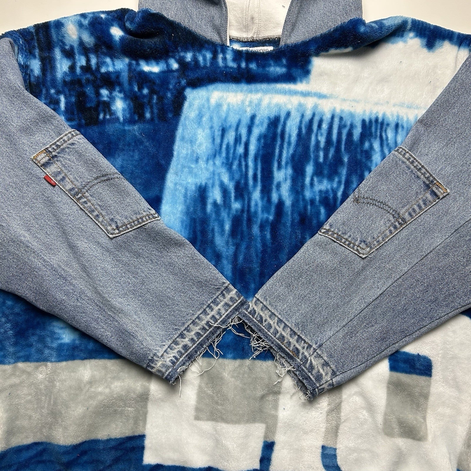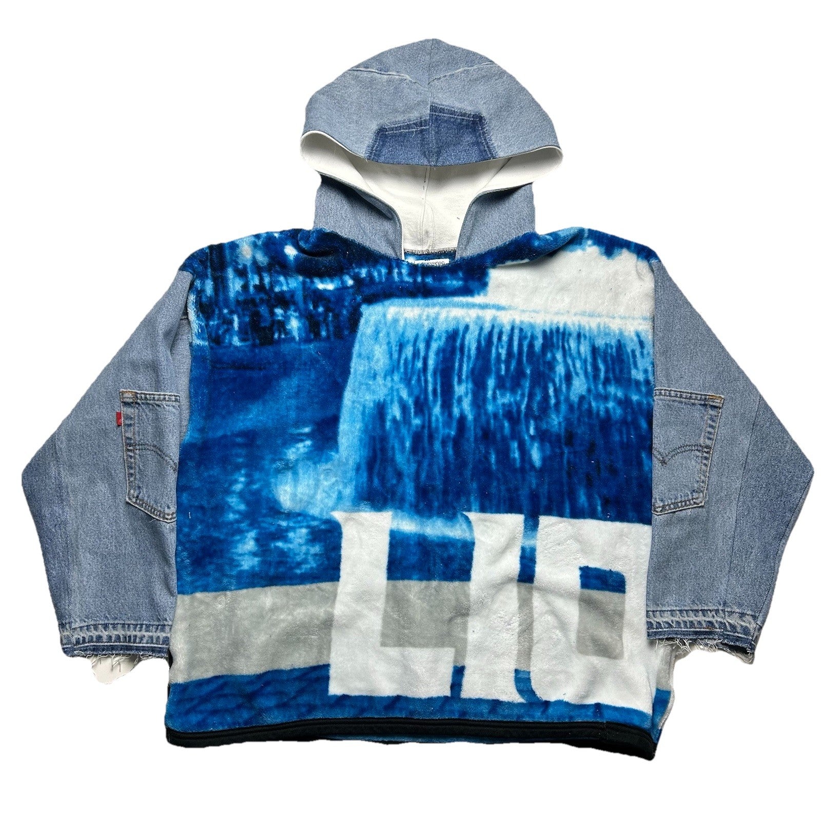 Reworked Detroit Lions Blanket Hoodie with Denim Sleeves (XL)