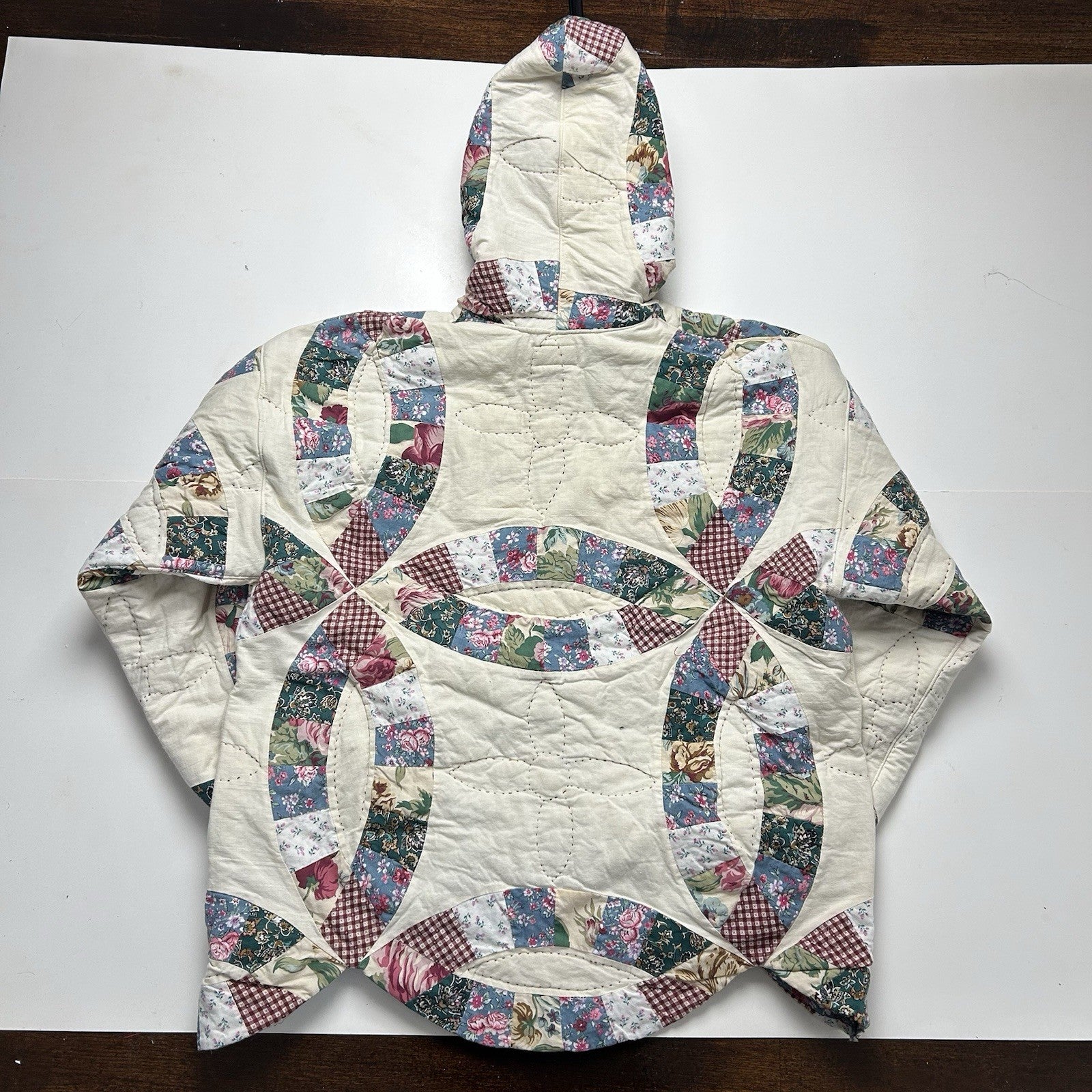 - Custom sewn using a reworked vintage quilt